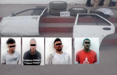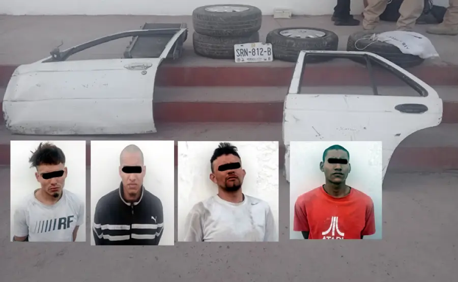La detención de Eduardo, Brayan, Jesús y Marco se llevó a cabo en la colonia Alianza Real Barrio Guerrero, donde los uniformados observaron a los sospechosos acumulando autopartes.