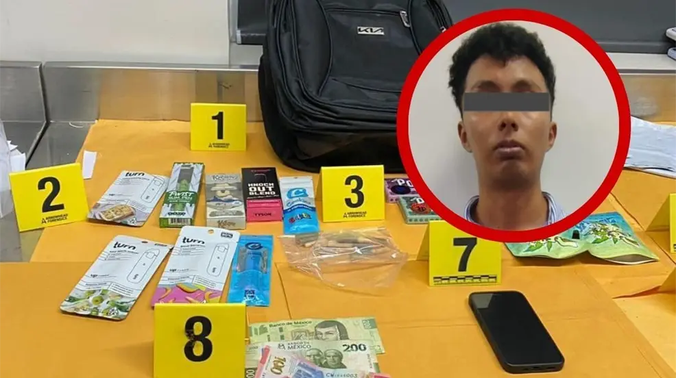 Se dijo que fue un elemento canino quien durante un recorrido logró olfatear los envoltorios que llevaba el joven; en la mochila que portaba el ahora detenido se trasladaban diversos cigarrillos de hierba verde, sobres de sustancias ilícitas y dinero en efectivo.