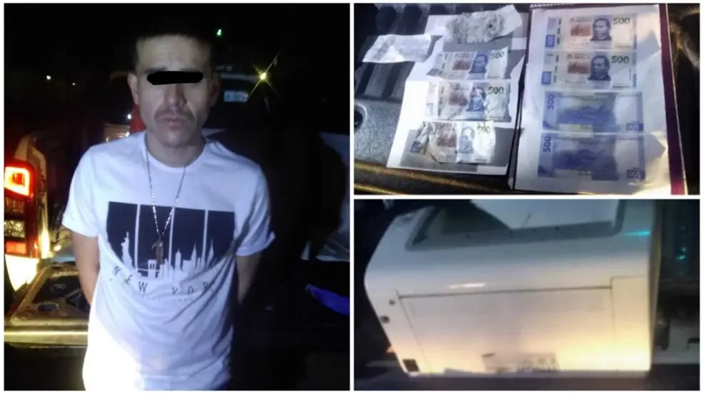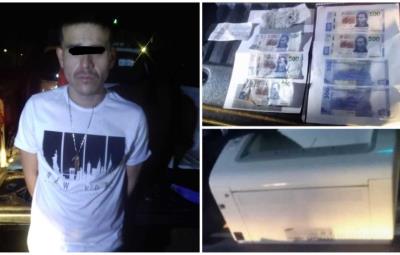 Detienen a hombre con billetes falsos y máquina para imprimirlos