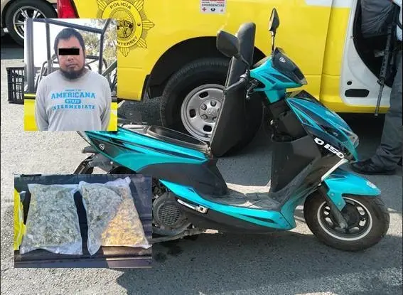 Un hombre fue detenido con un kilo de mariguana en motocicleta sin placas en la colonia Valle Verde Monterrey.