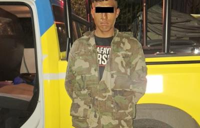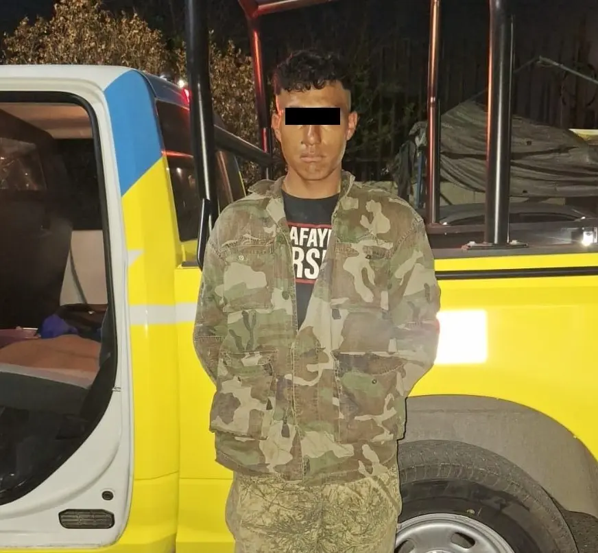 Durante un recorrido de prevención y vigilancia, los oficiales observaron a un hombre vestido con ropa tipo militar tratando de esconderse entre los vehículos estacionados.