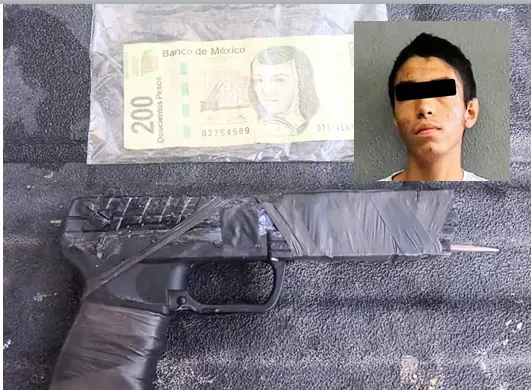 Sin embargo, la víctima solicitó auxilio a los policías municipales que realizaban labores de vigilancia en la zona.Los oficiales dieron alcance a uno de los ladrones cuando intentaba trepar el barandal de un domicilio para esconderse, pero cayó al suelo y soltó el arma que portaba.