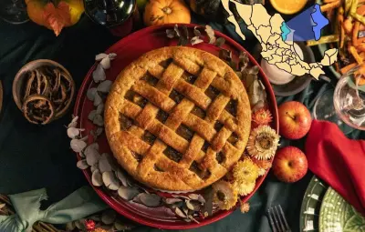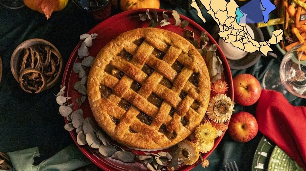 Los postres también reciben un toque distintivo, con opciones como capirotada, empanadas de cajeta y el tradicional pan de elote que se suman al pay de nuez y tartas de manzana.