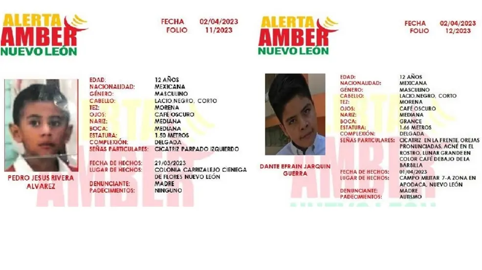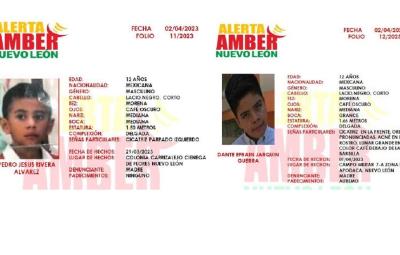 La Fiscalía General de Justicia del Estado de Nuevo León emitió la Alerta Amber para localizar a 2 niños de 12 años que fueron vistos por última vez en los municipios de Ciénega de Flores y Apodaca.