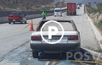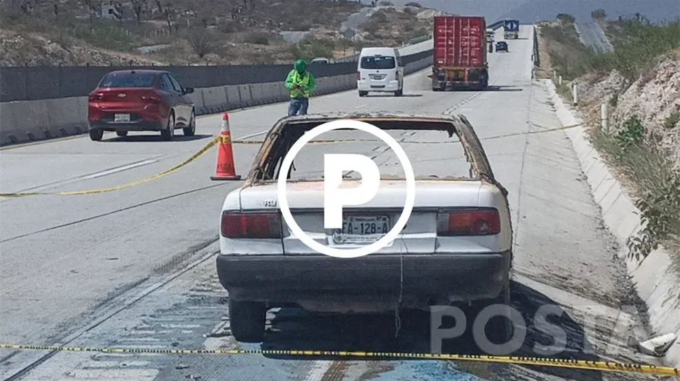 A tan solo dos kilometros de la caseta de cobro en la autopista de Monterrey a Saltillo, en Santa Catarina fue encontrada el cuerpo de una persona sin vida en la cajuela de un taxi calcinado.