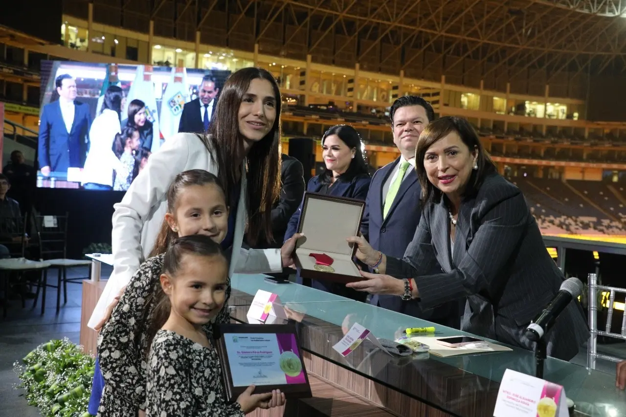 GUADALUPE, Nuevo León.- La alcaldesa de Guadalupe, Cristina Díaz, encabezó la entrega de la Medalla al Mérito Ciudadano “Francisco de Barbadillo y Vitoria” en el Estadio BBVA.