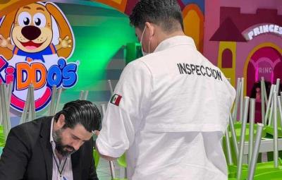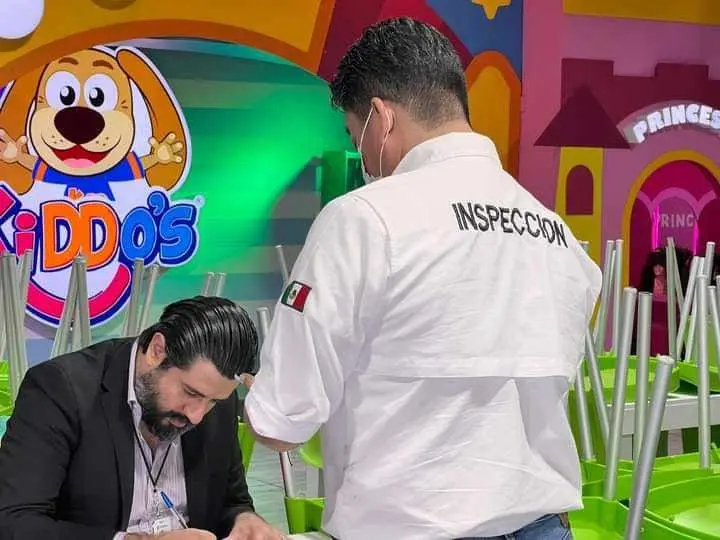 Personal de Protección Civil y dirección de Comercio e Inspección y Vigilancia acudieron al salón de fiestas infantiles que está en la Plaza Nia y se detectó que el lugar no cuenta con los requerimientos ni permisos correspondientes para operar como salón de fiestas infantiles, además de que el personal que labora en este lugar no está capacitado para atenderlo.