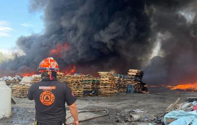 Fuego consume negocio reciclador de cartón y madera en Escobedo