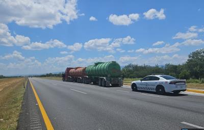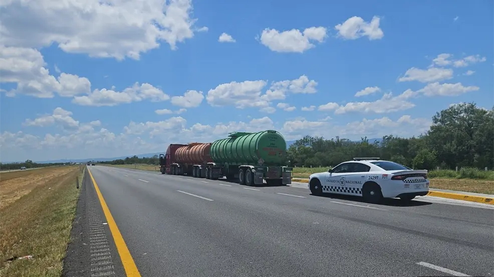 SABINAS HIDALGO, Nuevo León.- En una operación realizada en la carretera Monterrey-Nuevo Laredo, integrantes de la Guardia Nacional detuvieron a dos personas que transportaban un tractocamión con dos autotanques acoplados que contenían 70 mil litros de gasolina sin la documentación legal correspondiente.