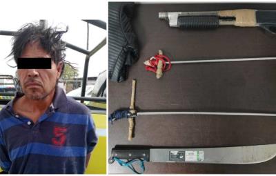 Un hombre con una escopeta y dos espadas fue detenido por policías de Monterrey por amenazar de muerte a 2 personas