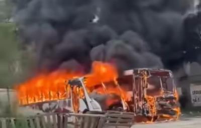 APODACA, Nuevo León.- Un incendio que consumió dos camiones estacionados en la colonia Misión de Huinala en el municipio de Apodaca.