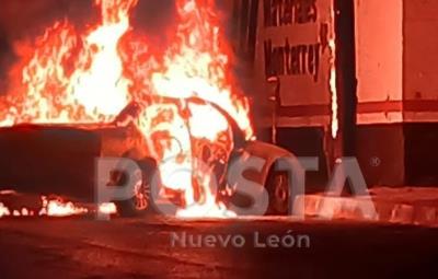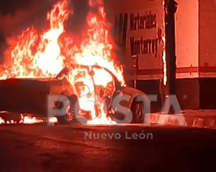A la zona llegaron elementos de Protección Civil de Monterrey y bomberos para sofocar las llamas pero el auto ya era pérdida total.