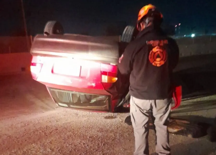 El incidente se registró en el kilómetro 24 de la vía, cuando el automóvil Ford Fiesta que conducía volcó tras invadir un camellón, dejando al conductor prensado en el lugar.