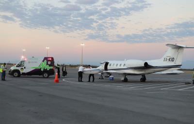 A la llegada de rescatistas municipales y tras llevarlo en una ambulancia, se requirió traslado desde el Hospital Universitario hacia el hangar en donde la nave lo esperaba y así llevarlo en la ambulancia aérea hacia el Shriners Hospital For Children en Galveston, Texas, lugar en donde el menor recibirá un tratamiento definitivo por parte de su staff médico.