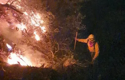 Protección Civil de Nuevo León, CONAFOR, SEDENA y diferentes corporaciones continuaron durante la madrugada del sábado el combate al incendio forestal en La Hondonable, de la sierra de Santiago, NL.