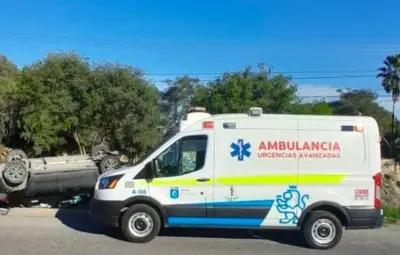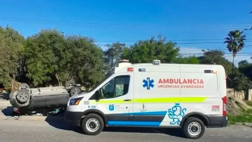 Una mujer y un menor de un año salieron ilesos tras una volcadura en Guadalupe, Nuevo León. Protección Civil y cuerpos de emergencia atendieron el accidente.