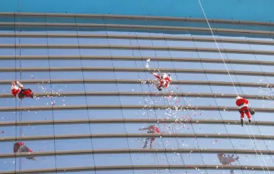 En un espectáculo sorprendente, Santa Claus y varios superhéroes descendieron desde los ventanales del hospital, cautivando a las y los pequeños pacientes que los observaban desde sus habitaciones.