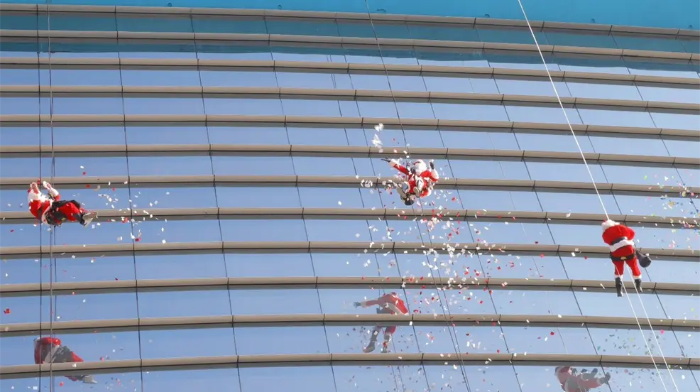 En un espectáculo sorprendente, Santa Claus y varios superhéroes descendieron desde los ventanales del hospital, cautivando a las y los pequeños pacientes que los observaban desde sus habitaciones. Ataviados con trajes coloridos y equipados para la misión, los personajes llenaron el ambiente de emoción y entusiasmo. La actividad fue organizada para brindar un instante inolvidable y romper la rutina hospitalaria con un momento de magia.
