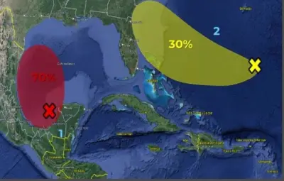 El Servicio Meteorológico Nacional pronosticó sobre lluvias históricas en Nuevo León y un posible ciclón tropical que se desarrolle en el sur de la península de Yucatán.