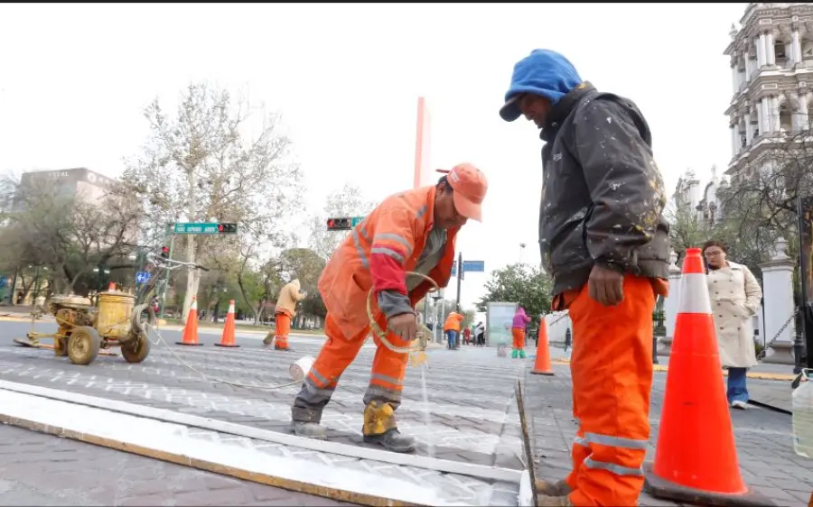 MONTERREY, Nuevo León.- La Secretaría de Servicios Públicos pintó los cruces peatonales, rampas y líneas divisorias, para darle una nueva cara a las calles del centro.