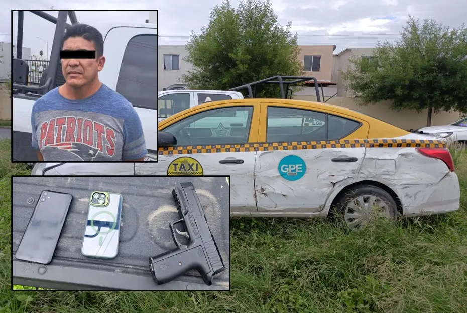 Finalmente, en la calle Los Agaves, el hombre perdió el control del vehículo e impactó a dos unidades policiales. Tras una persecución a pie, lograron detener al individuo, identificado como Omar P., de 47 años, quien llevaba un arma tipo escuadra y dos teléfonos celulares.