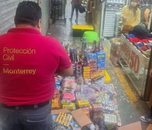 MONTERREY, Nuevo León.- En un operativo conjunto entre la Policía de Monterrey, Protección Civil y la Dirección de Comercio, autoridades municipales lograron decomisar cerca de 700 kilos de pirotecnia en la zona centro de Monterrey.