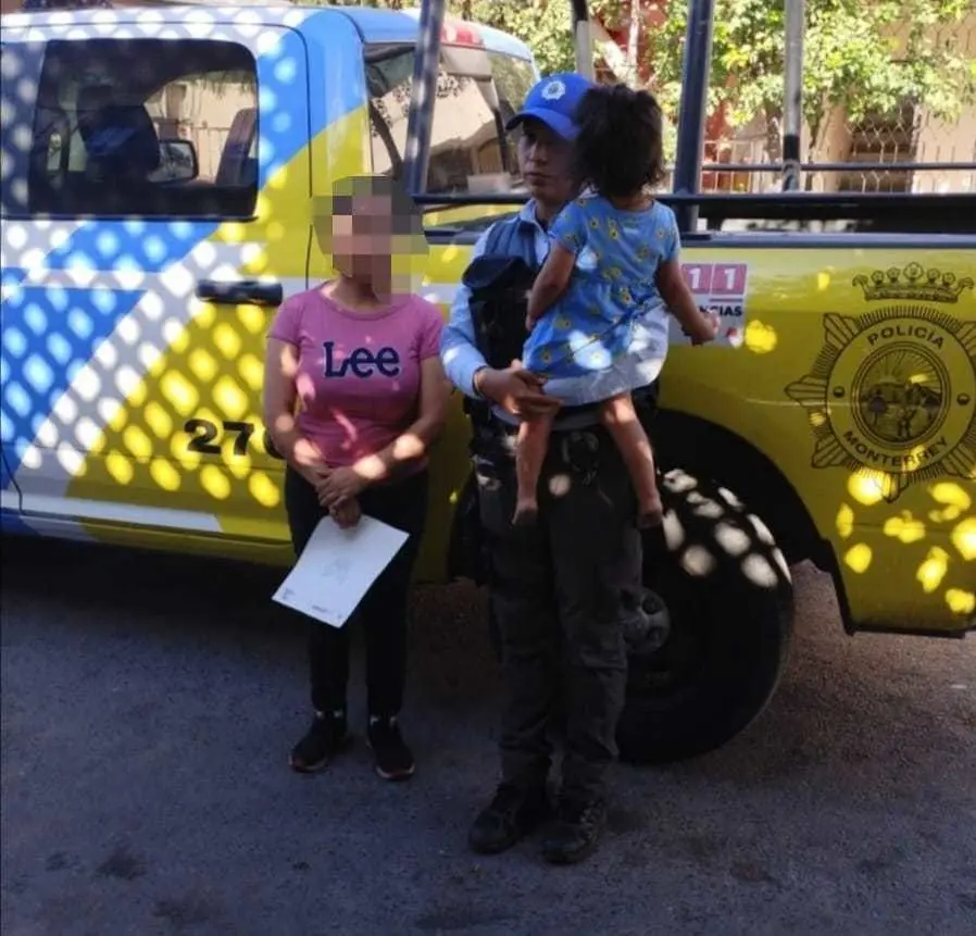 Policías de Monterrey localizaron a una menor de dos años de edad que caminaba sola en la vía pública en la colonia Mariano Escobedo.