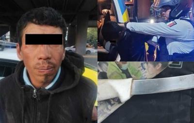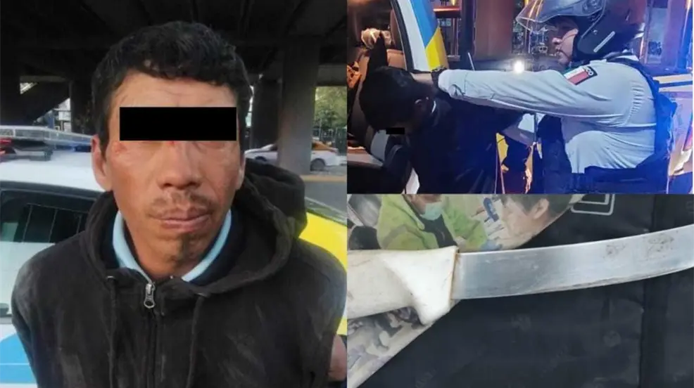José G., de 40 años de edad, fue capturado por los elementos policiales mientras amenazaba al propietario de un vehículo Hyundai color blanco, quien esperaba el cambio de luz del semáforo.