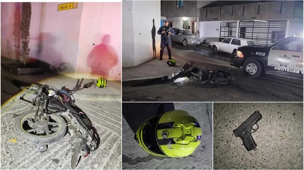 En el lugar de los hechos, se encontró un arma de fuego tipo escuadra y la motocicleta utilizada por los delincuentes.