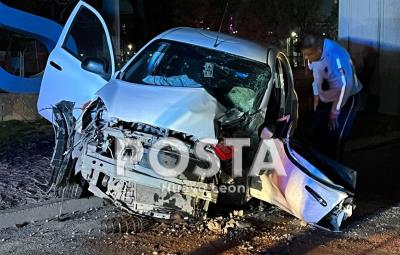 El fuerte choque de un auto contra una estructura del metro en la avenida Universidad, el hombre quedó atrapado y herido.