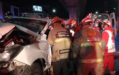 MONTERREY, Nuevo León.- Unidades de Protección Civil de Nuevo León se desplazaron hacia la avenida Aztlán cruce con Magnolia, en el Fraccionamiento Aztlán en Monterrey, ante el choque de un vehículo contra el muro de contención y mismo que dejó a un hombre prensado dentro del automóvil.