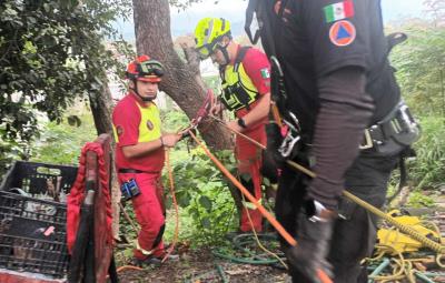 Se instaló un sistema de polipastos para descender a un rescatista y extraer a la menor para posteriormente ser valorada en zona segura. La menor no presentaba lesiones graves aparentes ya que cayo directo en el agua sin golpearse con alguna de las paredes o el fondo.