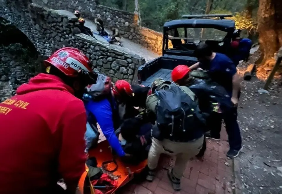 MONTERREY, Nuevo León.- Rescatistas de Protección Civil Nuevo León acudieron de inmediato al parque natural La Estanzuela, ubicado en Monterrey, tras recibir un reporte sobre una persona que sufrió una lesión en el tobillo al caer de su propia altura en la Cascada El Cielo.
