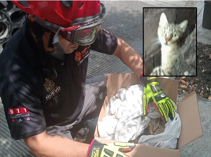 La Unidad U.07 de Protección Civil de Nuevo León se puso en marcha de inmediato para acudir al rescate del felino herido.
