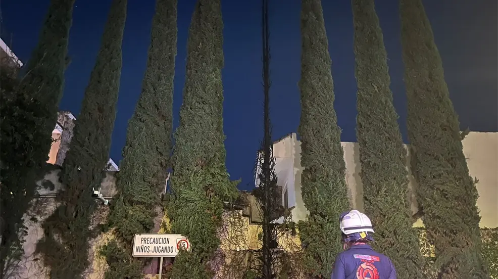 Al llegar al lugar, las autoridades confirmaron que efectivamente se encontraba en llamas y que el árbol de aproximadamente 15 metros de altura fue consumido en su totalidad.