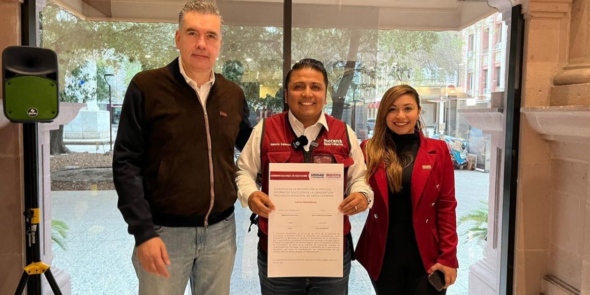 MONTERREY, Nuevo León.-   El regidor de MORENA en Santa Catarina, Roberto Espinosa se registró como aspirante para buscar la alcaldía del municipio.
