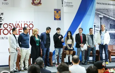La Universidad Autónoma de Nuevo León (UANL) ha inaugurado la quinta edición de la Cátedra Osvaldo Batocletti como parte de las celebraciones del 50 aniversario de la Facultad de Organización Deportiva. El Rector de la UANL, Santos Guzmán López, encabezó la ceremonia de inauguración en la que se reconoció la trayectoria del capitán felino fallecido en 2019, en el evento estuvieron directivos de Kings League Américas y del equipo Raniza FC.