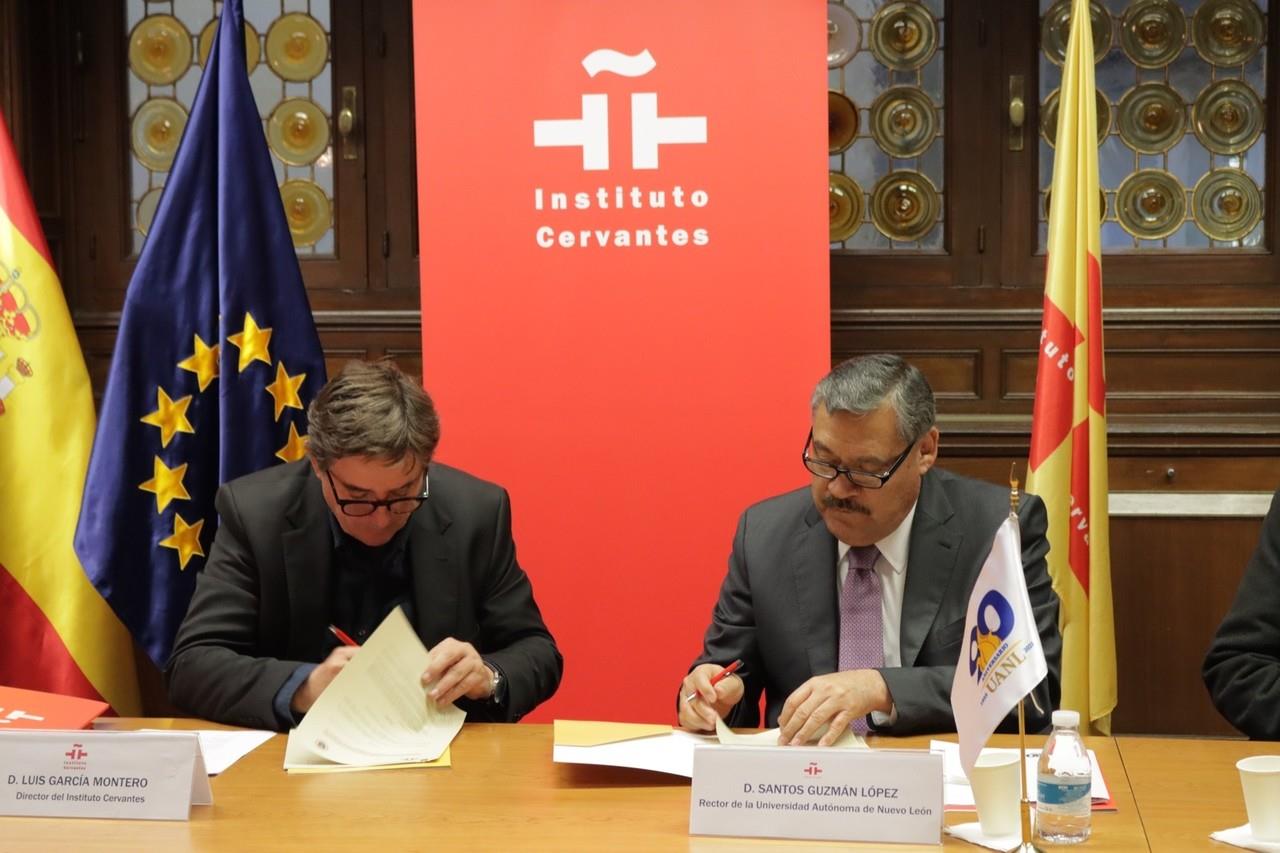 MONTERREY, Nuevo León.- La Universidad Autónoma de Nuevo León (UANL) y el Instituto Cervantes renovaron el 6 de noviembre los lazos de colaboración a través de la firma de un acuerdo bilateral. El acuerdo tiene como objetivo el fomento de actividades educativas, culturales y formativas de los universitarios y el agregado del catálogo de la UANL a la biblioteca digital de la institución española.