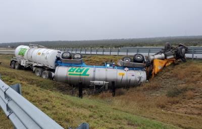 Elementos de Protección Civil se movilizaron al municipio de General Bravo para atender la volcadura de un autotanque.