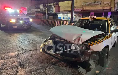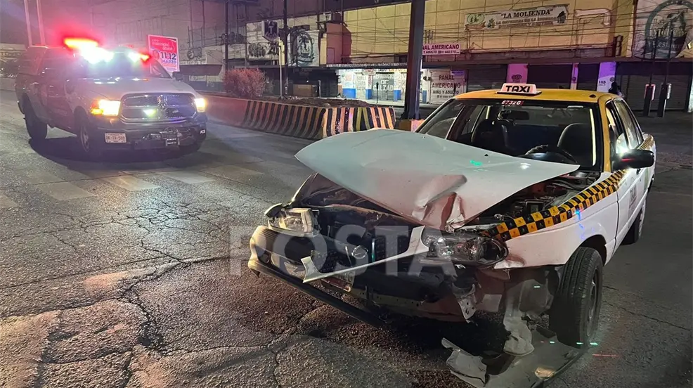 De acuerdo con las autoridades, el vehículo particular que circulaba de oriente a poniente, presuntamente no respetó la luz roja del semáforo y fue impactado por el taxista, donde todo quedó en daños materiales.