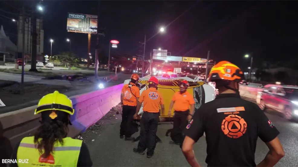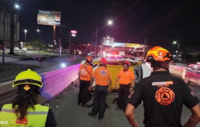 SANTA CATARINA, Nuevo León.- Elementos de Protección Civil de Nuevo León respondieron a un reporte de volcadura de un taxi en Santa Catarina.