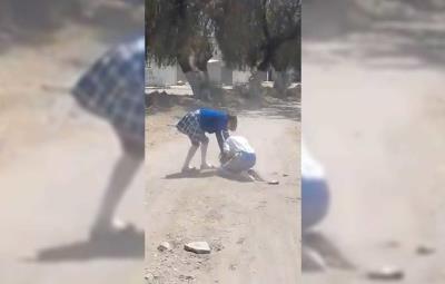 En un video difundido a través de redes sociales se difundieron las imágenes donde se aprecia cómo la presunta bulleadora golpea a la víctima con una piedra.