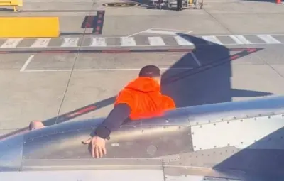 Sin embargo, el hombre caminó por el ala y se bajó por uno de los dos motores del Airbus A320.