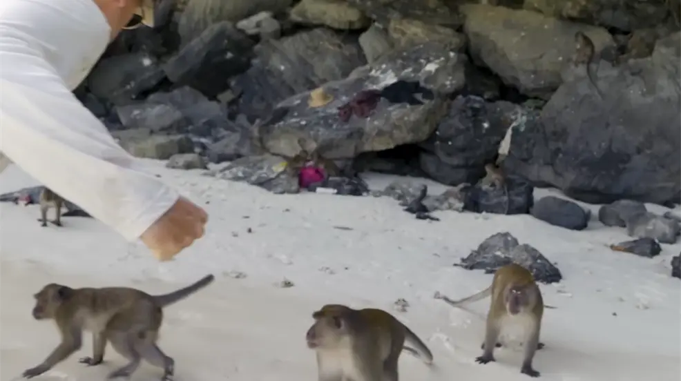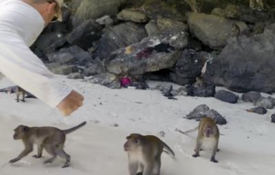Atacan monos a familia “youtuber” mientras vacacionaban en una playa