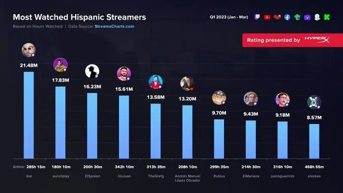 Esta cifra es mayor a los 9.7 millones de horas de Rubius y los 9.4 millones de horas de El Mariana. A pesar de esto, el canal del presidente sigue siendo superado por TheGref, Illo Juan, El Spreen, Auronplay e Ibai en términos de visualizaciones acumuladas.