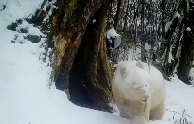 Captan al único oso panda totalmente blanco en China