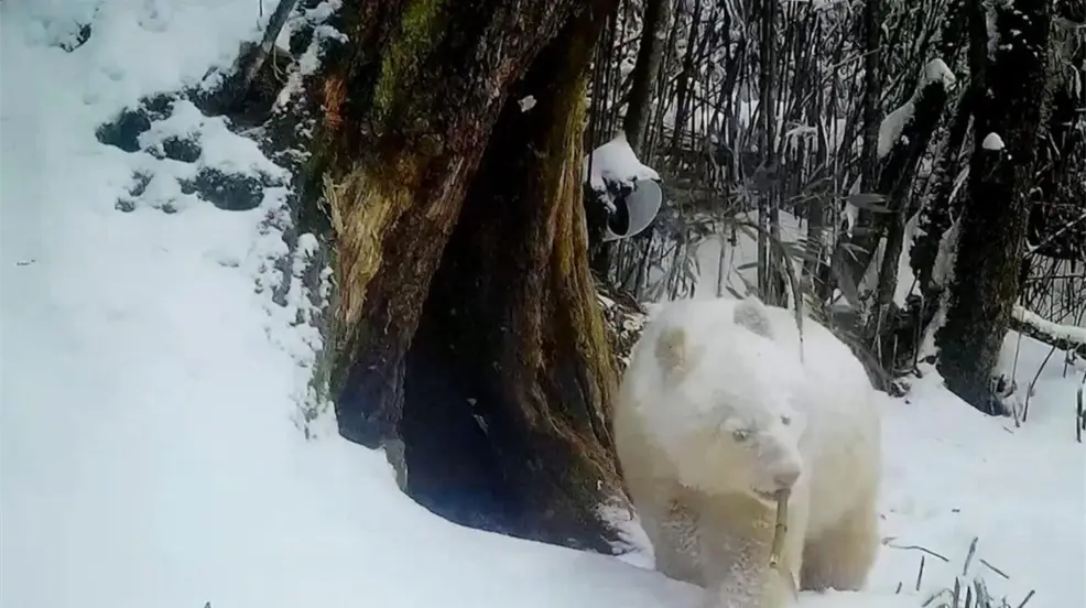 Un avistamiento insólito se dio en China, donde un captado el único oso panda totalmente blanco.