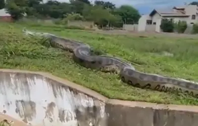 BRASIL.- Una gigantesca anaconda fue captada arrastrándose entre el pasto de una localidad de Brasil; por fortuna, el enorme reptil no atacó a alguna persona, por lo que solo quedó en un gran susto para quienes se percataron de su presencia.