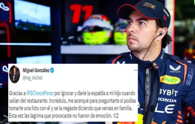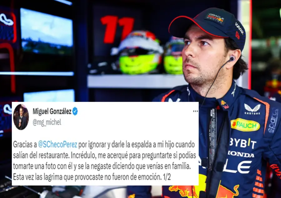 Miguel González, comentarista de ESPN, exhibió la presunta mala actitud de Sergio “Checo” Pérez, luego de que este se negó a tomarse una foto con su hijo.