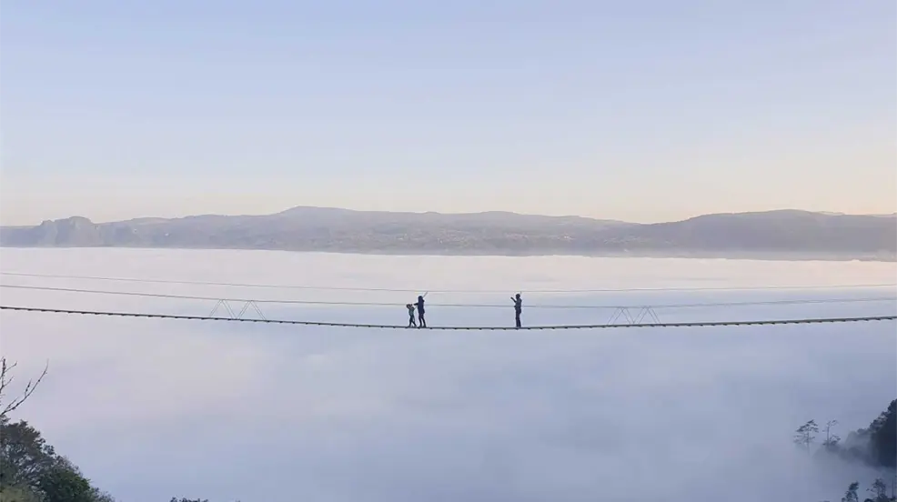 El crujir de las tablas bajo tus pies, el viento en el rostro y las vistas espectaculares hacen de cada cruce una experiencia multisensorial. Resulta en una armonía entre el ser humano y la naturaleza.